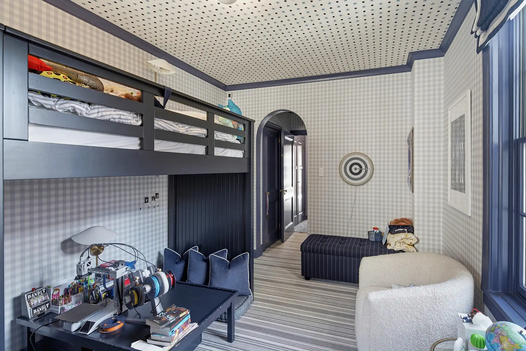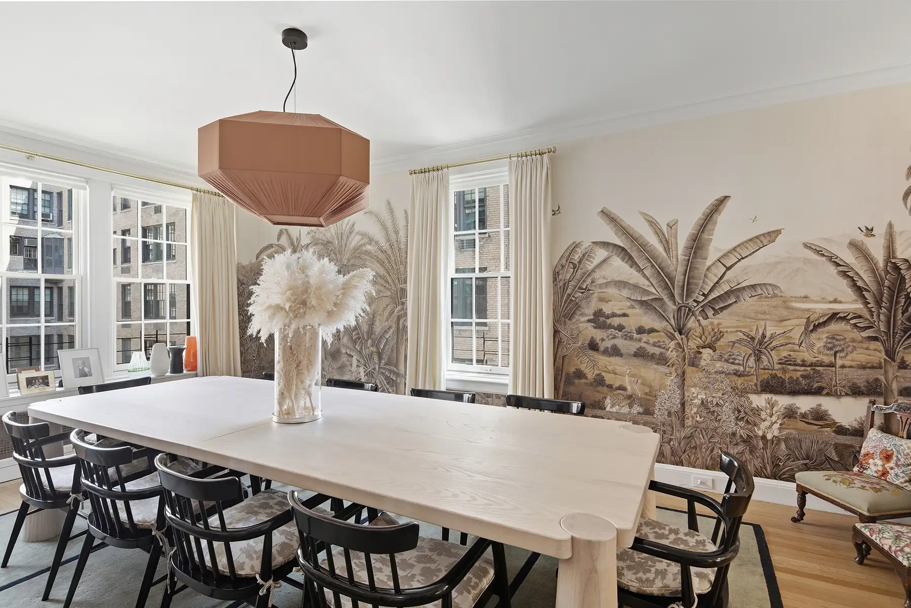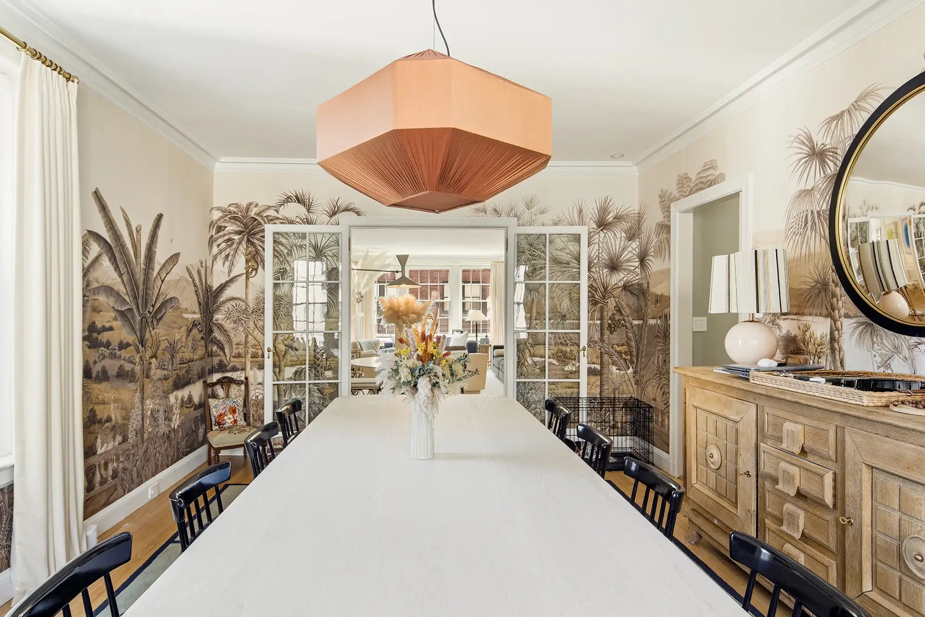 Throughout the home, original prewar character has been thoughtfully preserved and elevated by bespoke millwork, designer lighting, custom built-ins, and a sophisticated decorative sensibility.